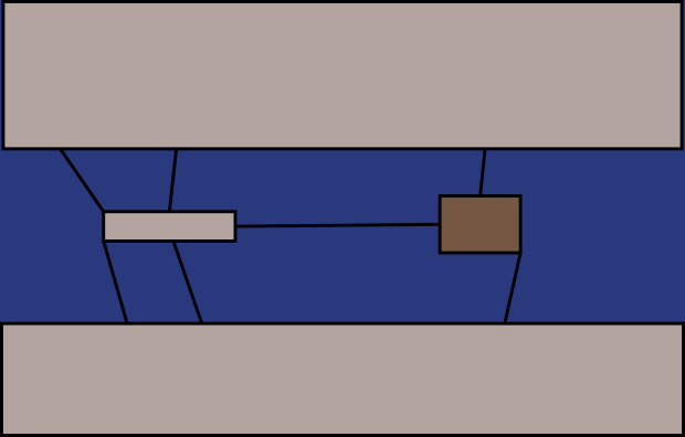 His first example is Euler's mathematical study of the bridges of Königsberg. The locals believed that one could not possibly traverse all seven of the town's bridges without crossing at least one of them twice. As in this diagram (or model), there were two islands and seven bridges connecting two riverbanks: